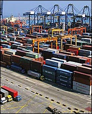 SHENZHEN, China -- THE giant maroon, blue and white cranes here hoist 40-foot-long steel freight containers onto four container ships, each as long as two football fields. The cranes work around the clock, yet lines of trucks bearing containers keep coming, and vessels often crowd a nearby anchorage waiting to be loaded at Yantian port.