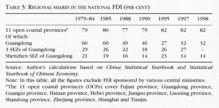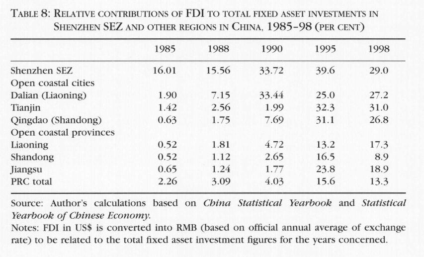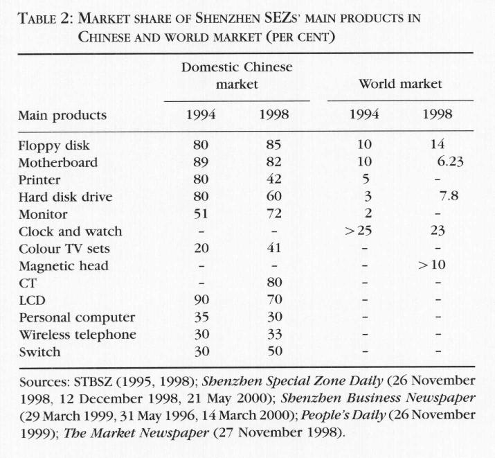 In 1998, as shown in Table 2, Shenzhen accounted for 14 per cent