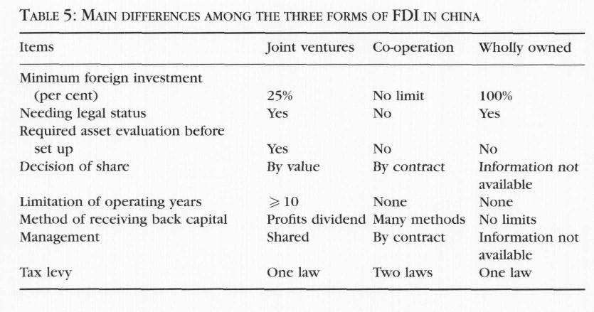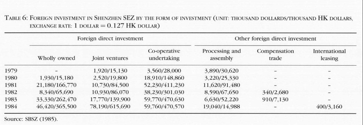 The Shenzhen SEZ government, in order to channel the necessary technology and capital to manufacturing, had devised four flexible and practical forms of foreign financial participation in projects: joint venture; co-operation production; wholly foreign-owned companies; and other direct investment. FDI flows came into Shenzhen SEZ mainly through three kinds of vehicles: wholly owned subsidiaries, joint ventures and co-operative firms, as shown in